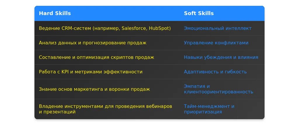 После адаптации: "Активные продажи, работа с CRM (Salesforce, Bitrix24), управление командой, аналитика продаж."