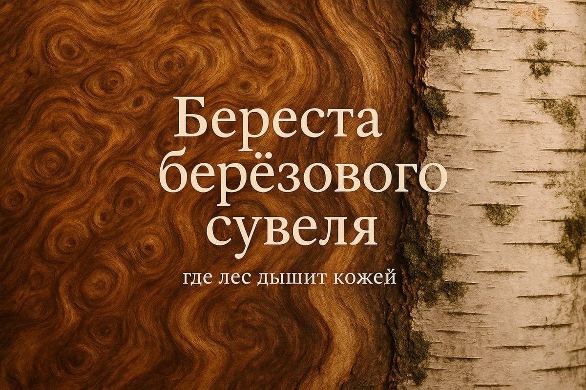 Когда берёзы шепчут свои лесные легенды, на их телах вырастают узоры, созданные временем, ветром и светом. Это не просто кора — это береста берёзового *сувеля*: живая ткань дерева, в которой природа заключила свою силу, здоровье и красоту. Её гладкая поверхность хранит тепло солнечных лучей, её аромат — дух тайги, а структура — тайны древесной трансформации. 🧬 Что такое береста сувеля — и почему она особенная Сувель — это не обычная древесина. Это особый тип нароста, возникающий в результате аномального роста волокон дерева. В отличие от капа, который содержит спящие почки, сувель — чистая игра хаотичных, но гармоничных волокон, как мрамор, созданный лесом. Береста, снимаемая с таких наростов, отличается особой гибкостью, плотностью и светоотражающей фактурой. Её поверхность напоминает лунный ландшафт: мягкие переливы, матовый блеск, прожилки как дыхание земли. Именно из неё традиционно создавали туески для хранения мёда, шкатулки с целебными травами, обереги и даже лечебные пластыр