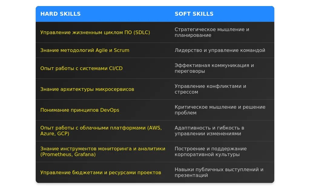 Обязательные: Опыт управления командой, знание Agile. Скрытые: Готовность к работе в динамичной среде.