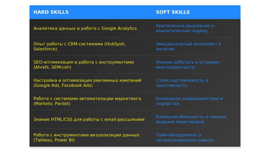 После: Управление маркетинговыми проектами, работа с CRM-системами, аналитика данных.