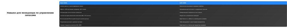Для менеджера по управлению запасами важно подчеркнуть свои профессиональные навыки и достижения:
