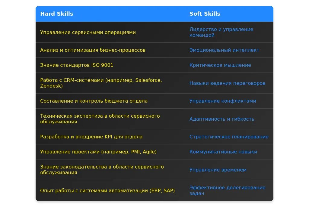 Анализ требований вакансии для профессии "начальник сервисного отдела"