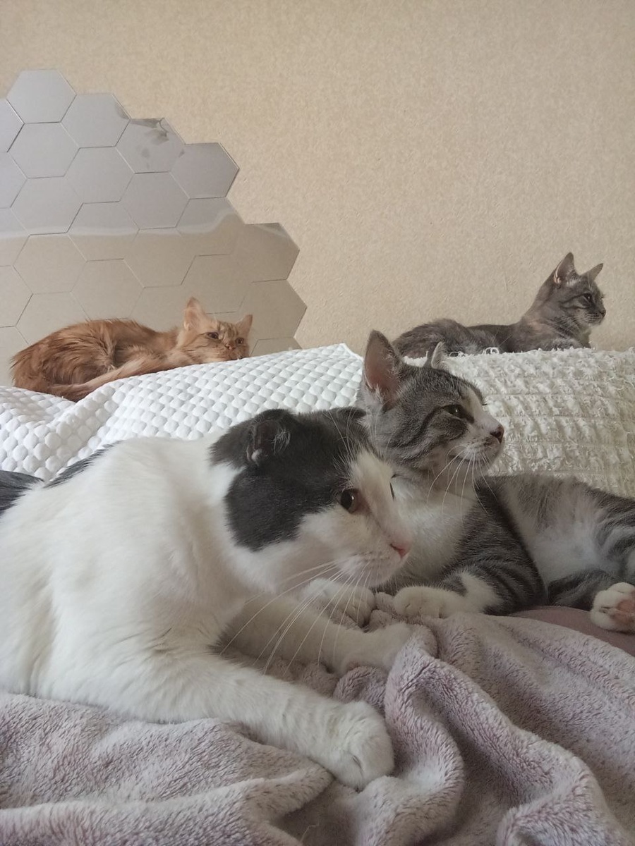 Доброе, солнечное субботнее утро ☀️☀️☀️!!! Можно позволить себе немного расслабиться, понежиться, заглянуть в телефон, написать пост, а потом выпить чашечку кофе ( если получится )😉😉😉. Все, кто мог забрался на меня, пользуясь моментом тоже понежиться. Думаю это не надолго! Кто то уже пошел хрустеть к миске, напоминая что есть пора. А там, за дверью, что то происходит!!! Вайфай уже пропал😄😄😄. Надо идти разбираться кто сегодня главный по интернету, а то Матвей видимо уже с лап сбился наводя порядок 🤣🤣🤣. #КотЭНяня #ХвостатоеСчастье #ЛюбовьнеПокупают #доброеутро