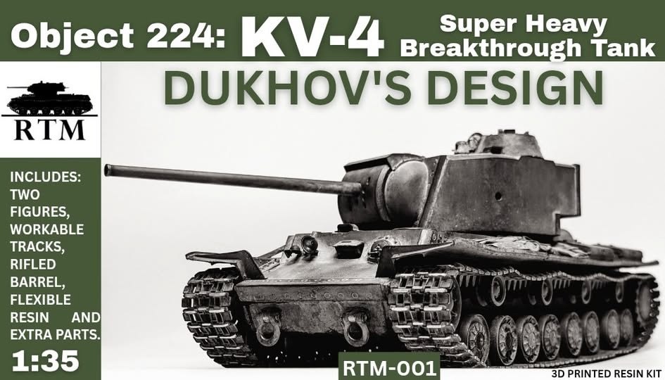 Resin Tech Models (RTM) из Голландии выпускает на 3D-принтере модель советского проекта тяжелого танка КВ-4 в масштабе 1/35.