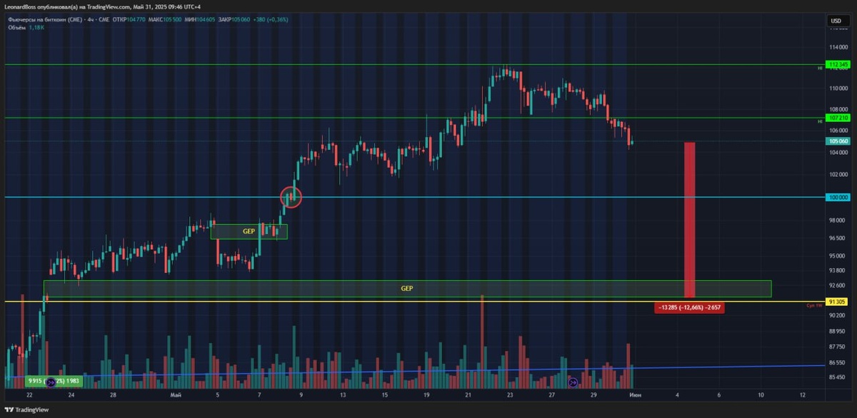 ☄️График BTC со СМЕ, 4Н ТФ, как вы знаете в выходные отдыхает, соответственно застывшая свеча - это закрытие вчерашнего дня. А помнить мы должны о том, что снизу болтается незакрытый GEP, что усиливает притяжение цены в зону уровня 91К. Это также один из фактов того, почему я обозначал этот уровень, как сильную поддержку технически, а уровень 100К отношу лишь к сильной психологической зоне. Просто мы должны об этом помнить, поскольку снижение на ещё 13% никоим образом не скажется на институционалах и крупных инвесторах, они даже этого не ощутят, а лишь еще больше пополнят свои мешки битком. Для большинства же участников рынка = это будет очередной шок и фиксация просадок, недавно купленных активов. Кстати, по вчерашнему закрытию дня, закрепилась шортовая структура!!