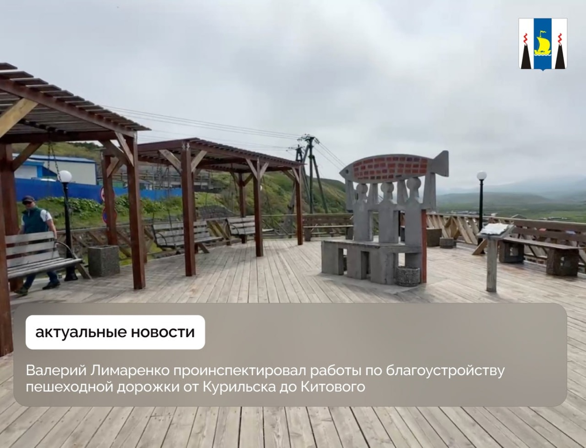 В ходе рабочей поездки на Итуруп губернатор Валерий Лимаренко проинспектировал работы по благоустройству пешеходной дорожки от Курильска до Китового Несколько лет назад маршрут выложили плиткой, чтобы жители и гости острова могли комфортно гулять вдоль побережья. Теперь проект дополняют тематическими зонами и обзорными площадками с арт-объектами, включая площадку «Стоянка айнов», где можно будет познакомиться с бытом коренного народа. Также появится новая лестница для спуска к морю и фотозона с вращающейся рамкой для снимков на фоне заката или вулкана. Работы планируется завершить в октябре. Также губернатор осмотрел новую пешеходную лестницу с видовыми карманами в районе улицы 60 лет Октября, благоустроенную в конце прошлого года. «Очень хорошее дело по благоустройству. Пешеходная дорожка — это красная линия. Люди должны гулять и наслаждаться видами, здесь не место грязи и ветхим постройкам. У подножия лестницы нужно привести в порядок берег — в августе пойдет кета, люди будут прих