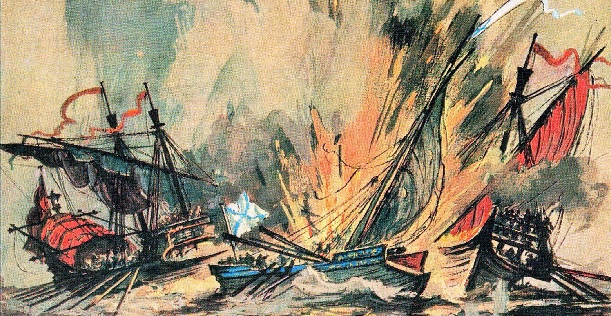 31 мая 1788 г. Экипаж русской дубель-шлюпки капитана Сакена взорвал свое судно вместе со взявшими его на абордаж турецкими галерами. Взрыв предупредил русские войска о приходе турецкой эскадры в гавань Очакова. Подвиг капитана Сакена подорвал боевой дух турок #ПамятныеДатыВоеннойИсторииОтечества #ДеньВИстории #ГодЗащитникаОтечества #80ЛетВеликойПобеды Источник: https://vk.com/wall-216215303_1933 Подпишитесь на наши группы ВКонтакте и в Одноклассниках - читайте, смотрите и комментируйте! Источник