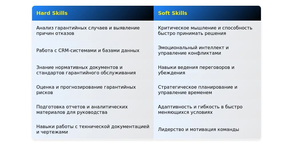 Обязательные технические навыки для менеджера по гарантии включают: