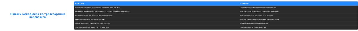 Анализ требований вакансии для "менеджера по транспортным перевозкам"