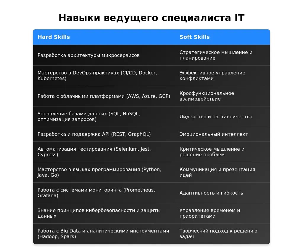 Анализ вакансии для профессии "ведущий специалист IT"