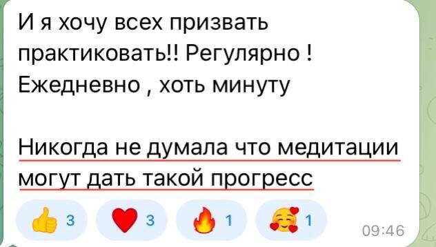 ⬇️⬇️⬇️⬇️⬇️ 5 ДНЕЙ ВИПАССАНЫ «МЯГКАЯ СИЛА» позади, и несмотря на то, что у участниц поднимается всякое, они продолжают делать шаги и приходят на практику 🔥 Особенно интересно наблюдать за тем, как в поток группы подбираются люди. Несмотря на онлайн-формат я чувствую эту глубину и, как я это называю, «широкие умы”». У практикующих: - Меняется качество Присутствия. - Становятся заметны тенденции ума, которые в обычной жизни не видны. - У многих ощутимо меняется уровень энергии. Никогда не думала что медитации могут дать такой прогресс Сегодня я просидела в состоянии присутствия все время, это была не концентрация, а тихое спокойное состояние здесь и сейчас. У меня не было мыслей, а если и приходили , они были очень плавные и спокойные, с ними было легко справиться, убрать, не вовлекаться в процесс мышления Когда в уме поднялась тревожность, перевела внимание вниз - и ощутила устойчивую опору, нижняя часть тела была спокойна. И стало так хорошо 💗 И еще я вижу, как участницы и