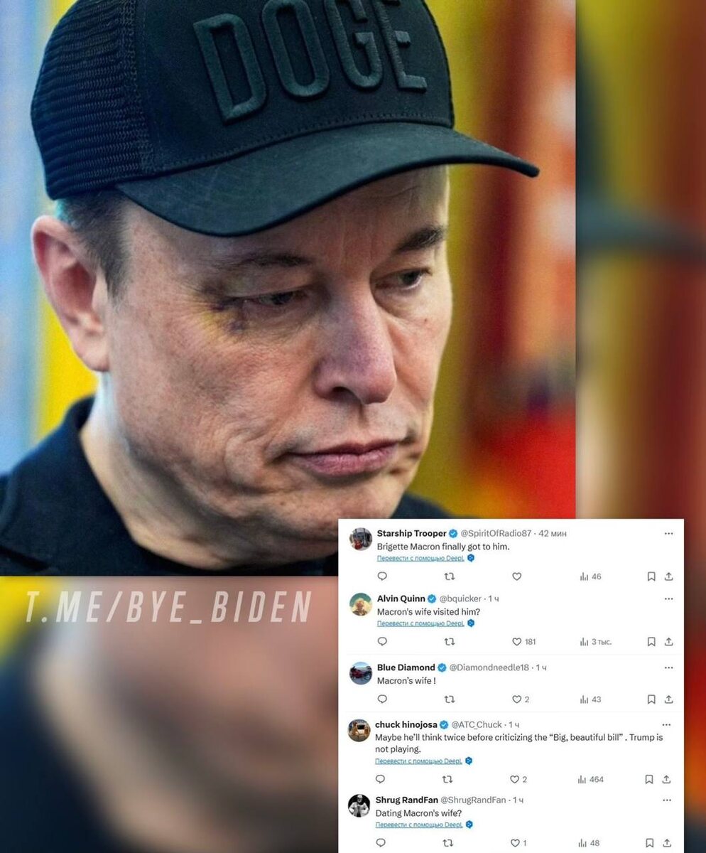 «Я не был нигде рядом с Францией» Илон Маск появился на прощальной конференции в Белом доме с синяком под глазом — он утверждает, что во время игры сам предложил своему пятилетнему сыну ударить его. Такое оправдание не убедило пользователей соцсети Х. Они поделились своими догадками о том, что Бриджит Макрон «наконец-то добралась и до Маска». А какую версию предложите вы? 👍 БайБайден. Подписаться