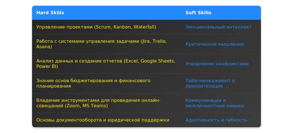 Анализ требований вакансии для профессии "ассистент руководителя проекта"