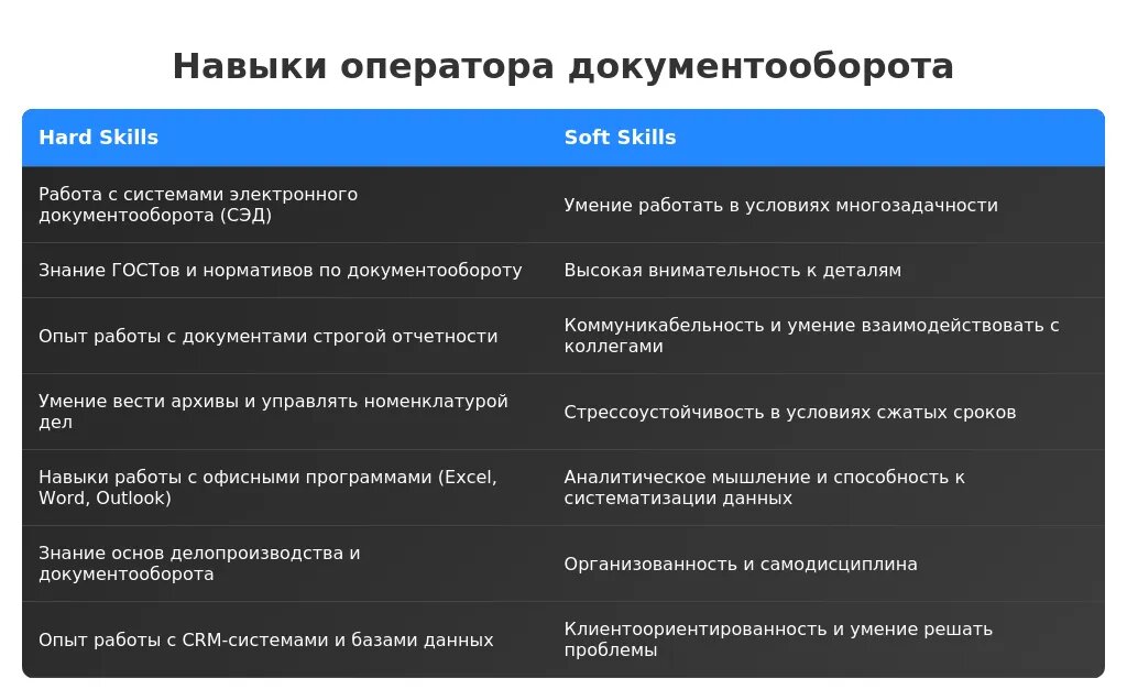 Анализ требований вакансии для оператора документооборота