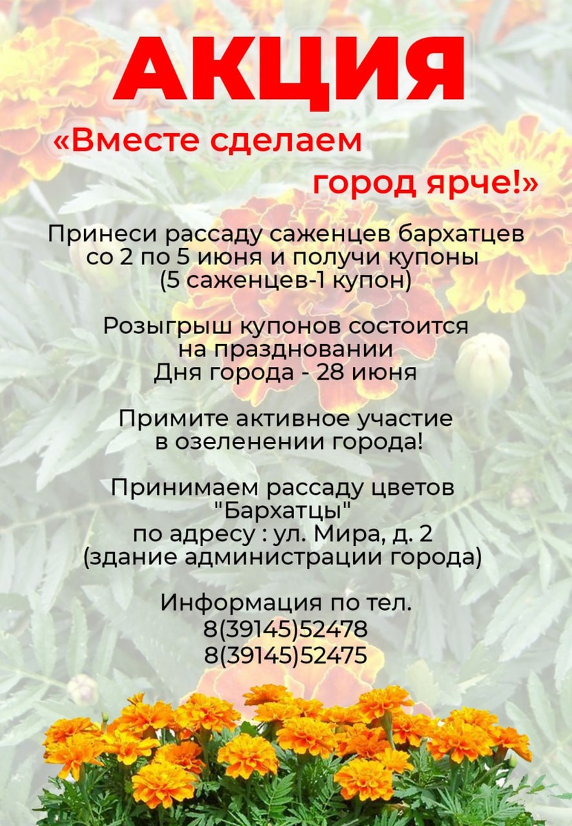 Отдел культуры администрации Лесосибирска приглашает жителей принять участие в акции "Вместе сделаем город ярче"! Саженцы планируют посадить на кольце в 5 микрорайоне.
