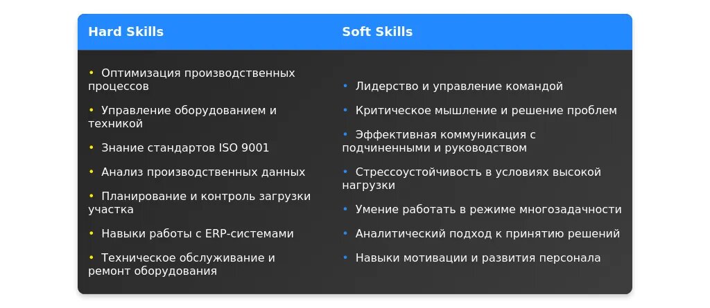 После: "Владение ERP-системами, организация работы команды, знание норм охраны труда."