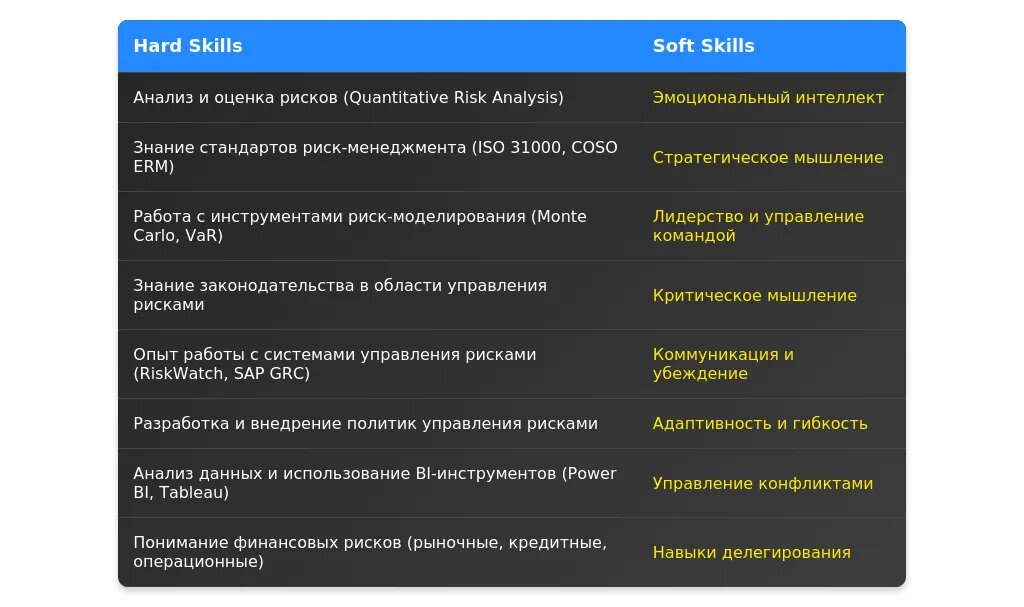 Обязательно включить: ключевые навыки, профессиональные достижения, специализацию и личные качества, которые важны для работы с рисками.