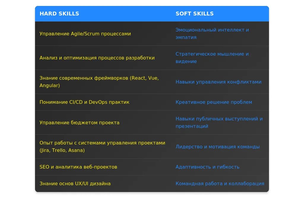 "Руководил разработкой 10+ web-проектов с бюджетом до $1 млн, внедряя Agile-методологии и повышая эффективность команды на 25%."