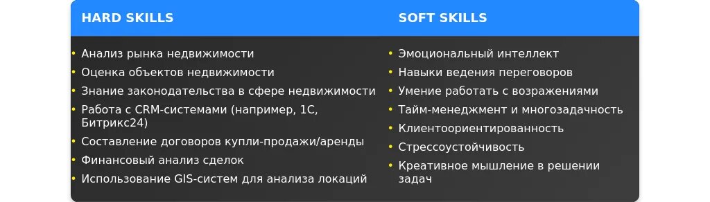 - Знание законодательства в сфере недвижимости и налогообложения.