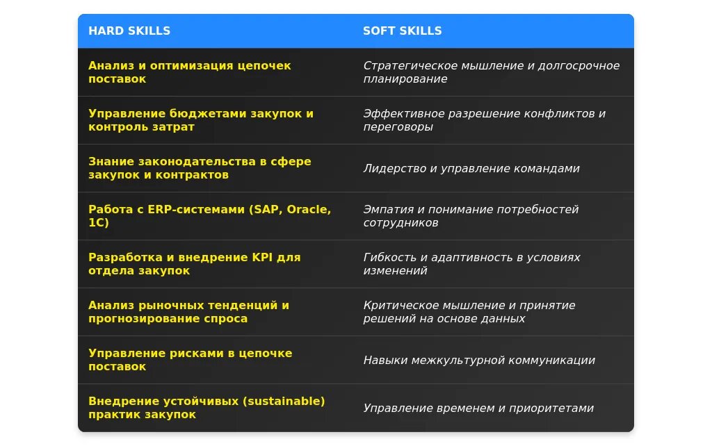 ✅ Стратегическое мышление: разработка долгосрочных стратегий закупок, снижение затрат на 15%.