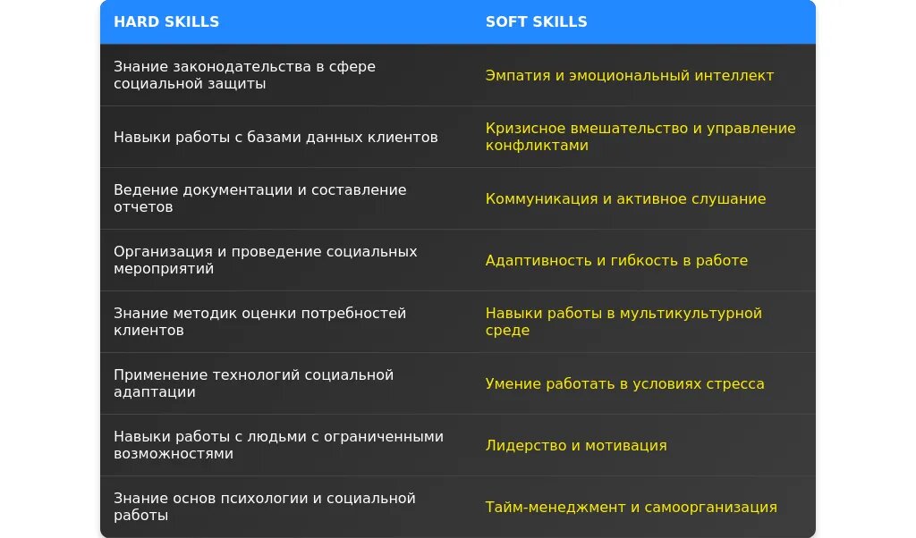 Начинающим социальным работникам важно показать готовность к обучению и базовые навыки. Акцент на: