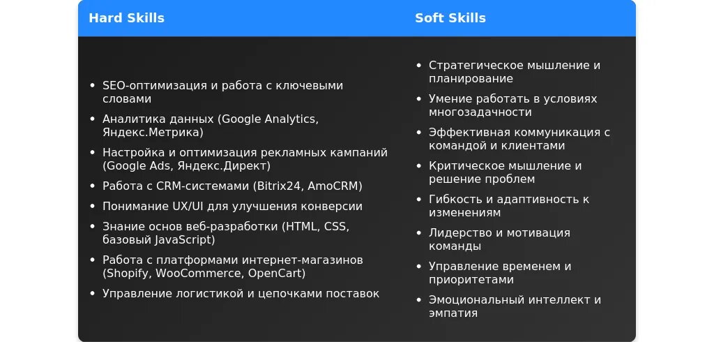 После: "Google Analytics, работа с маркетплейсами, управление проектами".