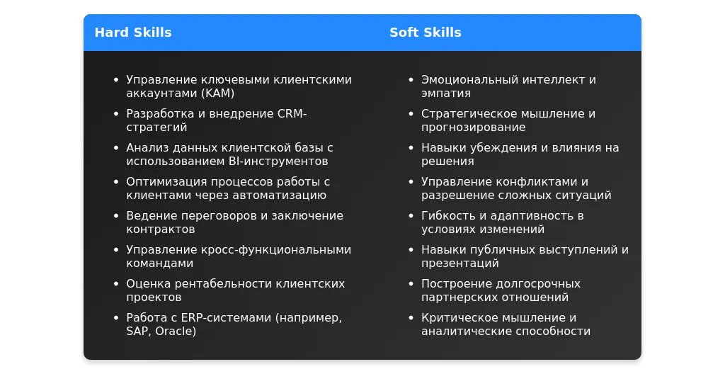 Коммуникабельность: налаживание долгосрочных отношений с ключевыми клиентами.