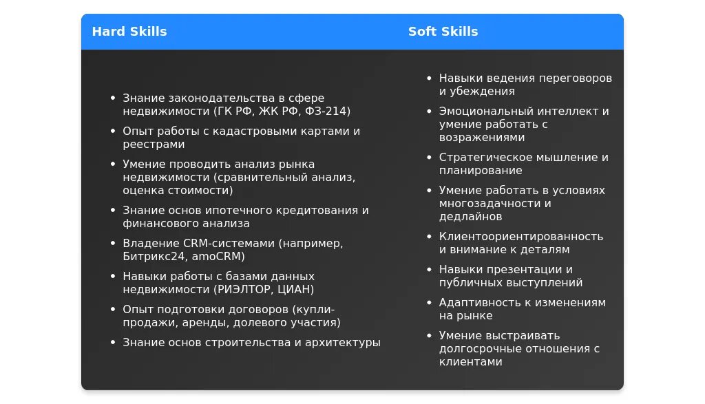 - Балансируйте между широтой и глубиной: "Знание всех этапов сделки, от анализа до заключения договора."