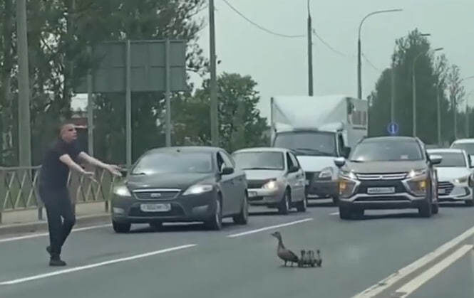Милое видео появилось в соцсетях. В Ярославле на Юго-Западной Окружной дороге один из водителей заметил утку с утятами, которая переходила дорогу по проезжей части. Неравнодушный ярославец решил помочь птицам: он поставил авто на аварийку, сам вышел на улицу и перегораживал путь другим водителям. Таким образом мужчина открывал путь маме утке с детьми. Об этом очевидцы рассказали в соцсетях. В комментариях ярославцы поддержали поступок водителя.