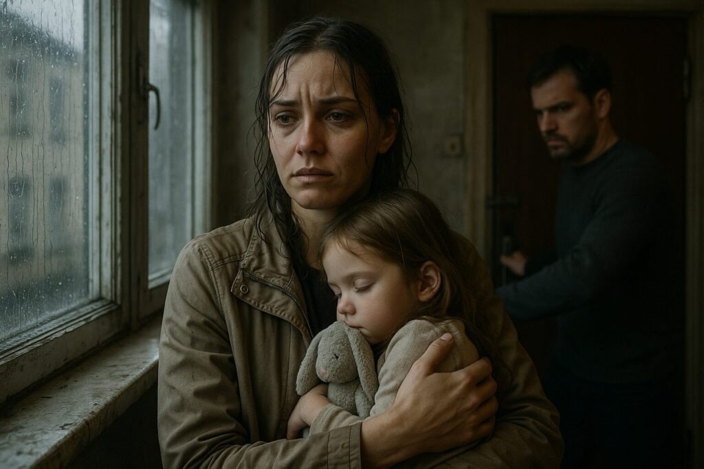 Дождь барабанил по окнам так яростно, словно пытался выбить стёкла. Полина стояла в прихожей с чемоданом в одной руке и спящей Катей на другой. Трёхлетняя дочь уткнулась носом в мамину шею, крепко сжимая в кулачке потрёпанного плюшевого зайца.