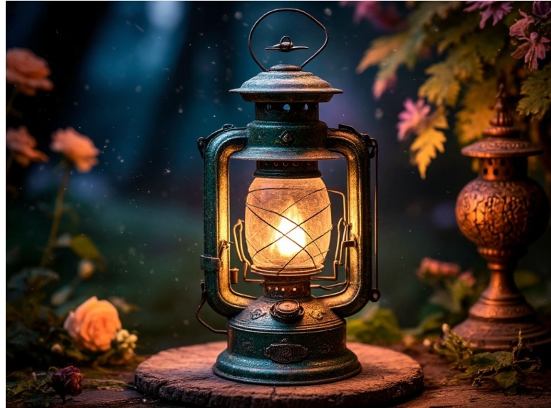 Через минуту перед ним стоял новый фонарик. Не тот, что был раньше — этот был деревянный, с ручкой и узором в виде переплетённых линий. Как корни. Или трещины.