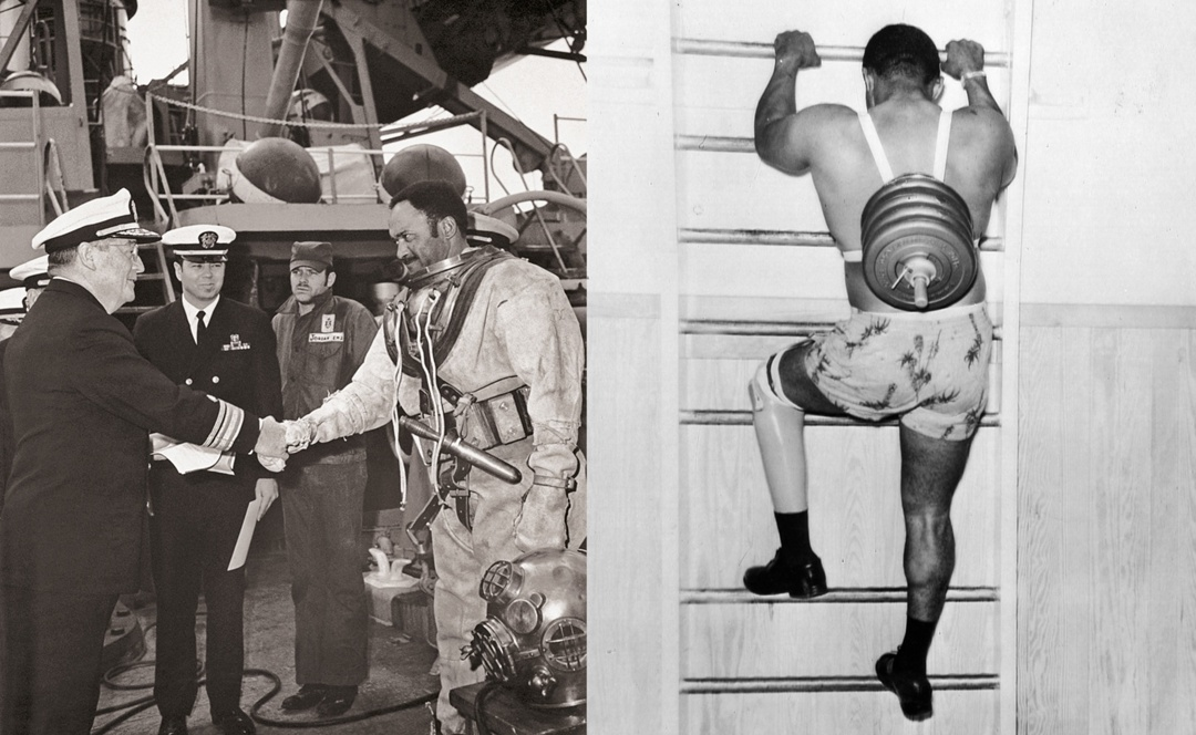 Водолаз, потерявший ногу, но вернувшийся в строй - случай уникальный и героический. Особенно для негра в США 50-60-х.