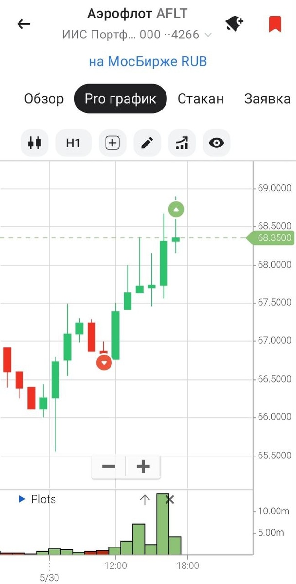 $AFLT #сделка Я оказался не прав насчет дивидендов, и их все-таки утвердили. Несмотря на скромную дивдоходность около 8% за год, рынок воспринял новость положительно. Также сегодня вышел отчет за 1кв2025, где виден рост расходов, значительно опережающий рост выручки. Без учета курсовых разниц Аэрофлот вообще получил убыток. На фоне всего этого мне не понятен рост котировки, но спорить с рынком бесполезно, меня отстопило по 68.7 (открывал шорт по 66.72) убыток 3% ❌ Возможно отдельную роль сыграл новостной фон – Аэрофлот воспринимается как бенефициар мира? Наверное это так. В целом, оглядываясь на свое решение шортить, – я не нахожу фундаментальной ошибки в логике. Единственное, что я сделал неправильно – надо было крыться рыночной заявкой сразу на новости, убыток был бы меньше. Как только исходная идея стала неактуальной – сделку нужно закрывать сразу. Вместо этого я поставил стоп выше максимума часовой свечи в которой вышла новость про дивиденды, который и сработал.