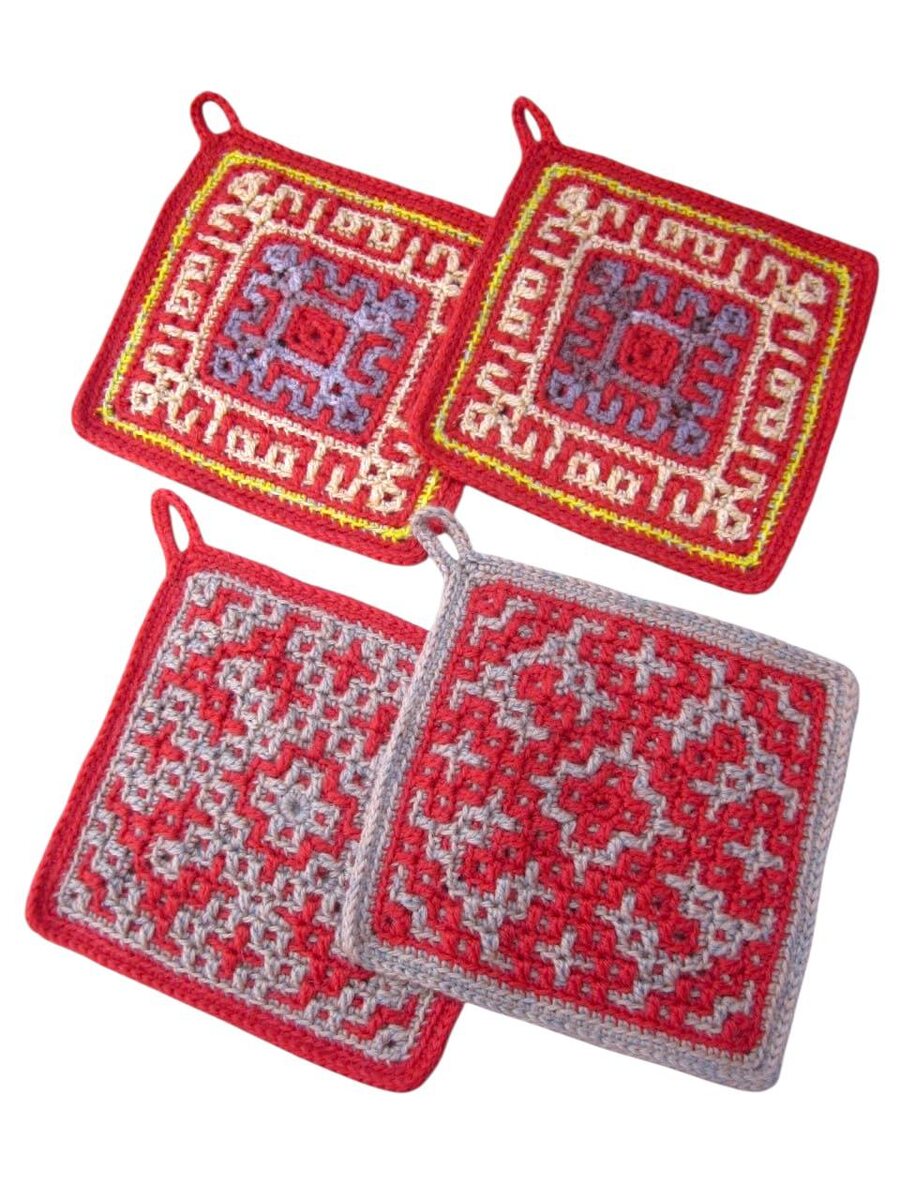 Марианна из чата «Квадрат в день» вяжет прихватки — смотрите, какие они разные и совсем нескучные🔥