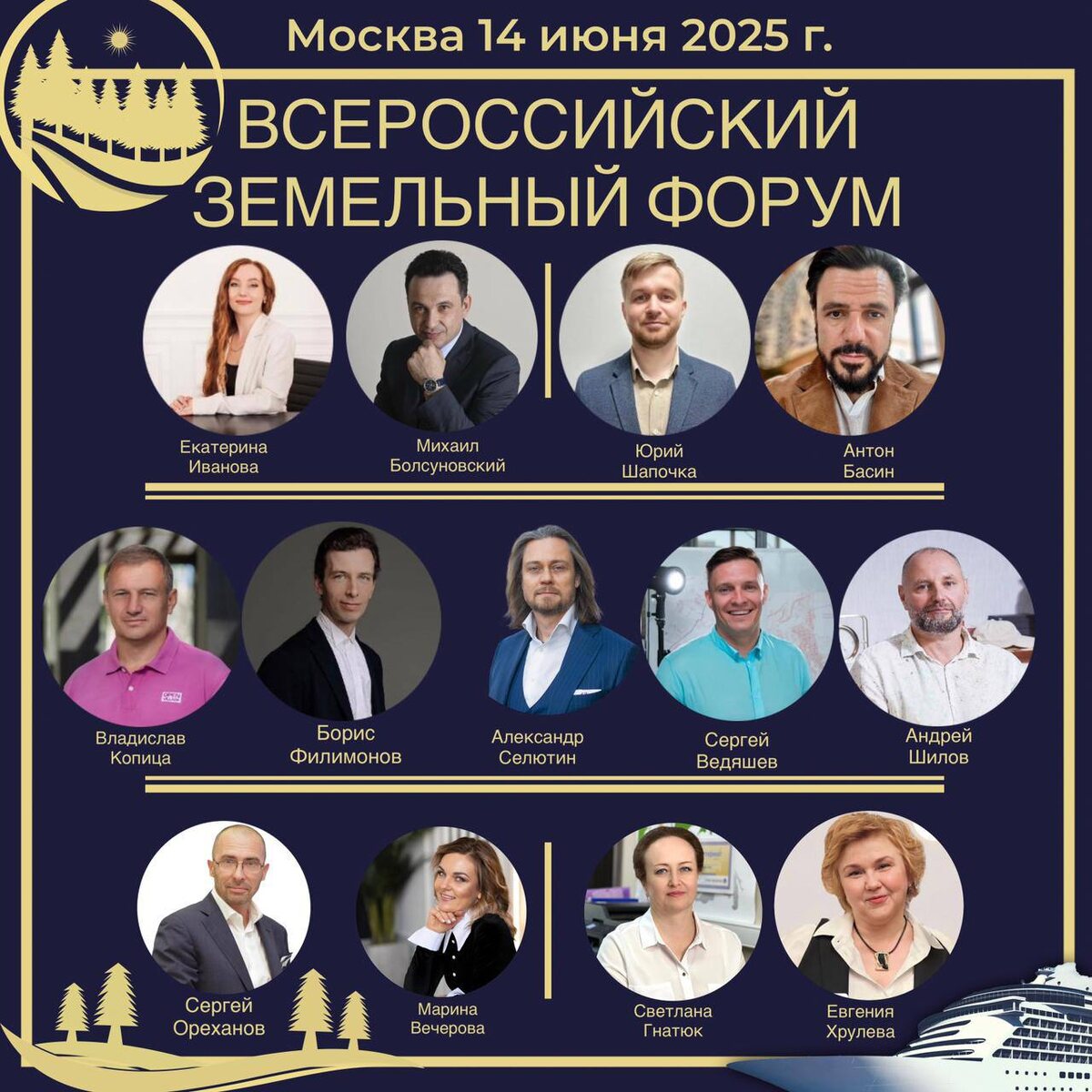 🔥🔥🔥Главное событие года о деньгах и бизнесе на земле: инвестиции, право, развитие. 🛳️🛳️🛳️ 14 июня 2025 года в Москве на теплоходе Императрица пройдет четвертый Всероссийский земельный форум. На форуме топовые спикеры и эксперты обсудят: 📈Тренды: аналитика, статистика, куда движется земельный рынок. 💵 Деньги: инвестиции в землю, ROI, кейсы, венчур. ⚖️Право и риски: как правильно выбрать и не потерять земельные активы, суды, сервитуты, обременения, изъятия. 💼Практика и кейсы: как зарабатывают на земле, реальный опыт. Всероссийский земельный форум - ваш премиальный круиз в мире земли и инвестиций. ‼️Количество мест ограничено. Вместимость теплохода 100 человек. Билеты на сайте https://roszemforum.ru На форуме выступят: Екатерина Иванова, к.ю.н., президент Межрегионального юридического центра земельных отношений, член общественного совета Минстроя РФ, эксперт Российского союза строителей, Ассоциации загородных отелей, Всероссийского жилищного конгресса Сергей Ореханов