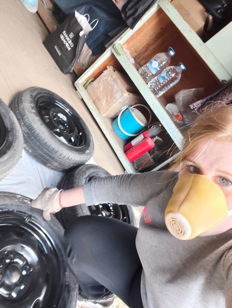 Можно было просто отдать мастерам. Но когда увидела цену — 💸 решила сделать сама. В шиномонтажке сказали: «Обезжирь и покрась баллончиком — всё просто».
