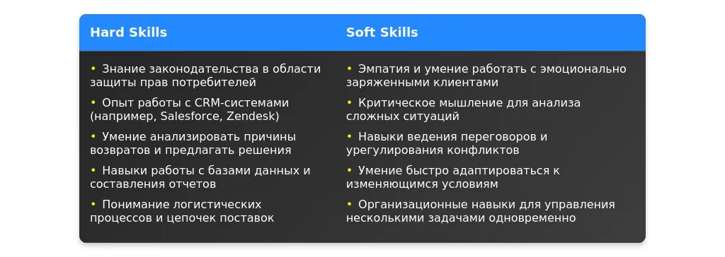 После адаптации: "Опыт работы с возвратами, знание CRM-систем, аналитика данных в Excel."