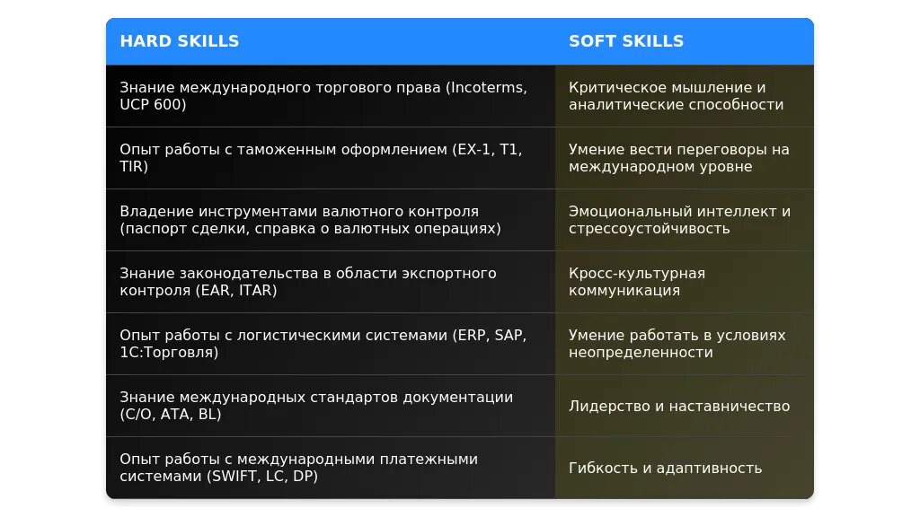 - Указание устаревших навыков (например, Incoterms 2010 вместо 2025).
