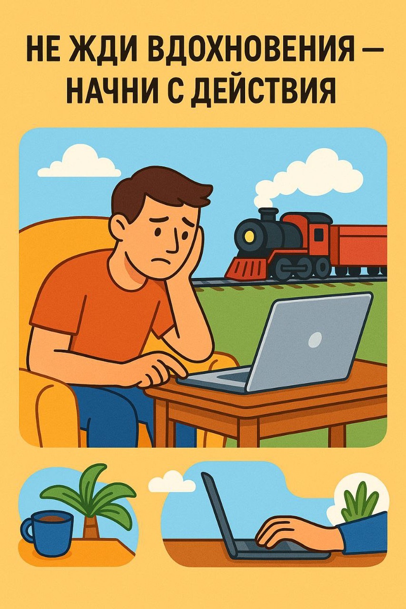 Иногда ты сидишь, смотришь на жизнь как на поезд, который давно уехал. Ты вроде бы всё понимаешь: что пора, что надо, что все вокруг уже давно бегут, строят, делают. А ты как вкопанный. День за днём ловишь себя на одном вопросе: «Почему я не могу просто начать?» Вроде и желание есть, и цели ясны, и даже план составлен. Но вот этот первый шаг — как будто бетонный. И сам себя грызёшь: «Соберись уже!» — а тело не слушается. Сегодня хочу поделиться тем, как я начал действовать. Без волшебных пенделей и мотивационных цитат. 1. Перестань ждать вдохновения. Начни с действия Это самая большая ловушка. Мы ждём, что вот-вот накроет — придёт ясность, появится энергия, захочется. Но жизнь — не кино. Никакой гром не грянет. Настоящий момент — это не «потом». Это вот прямо сейчас. Как в спорте: не жди, пока захочешь — просто встань и начни разминку. Потом — втянется. Я начал писать, когда было тяжело. Начал звонить клиентам, когда не хотелось разговаривать ни с кем. И что интересно — через 10 ми