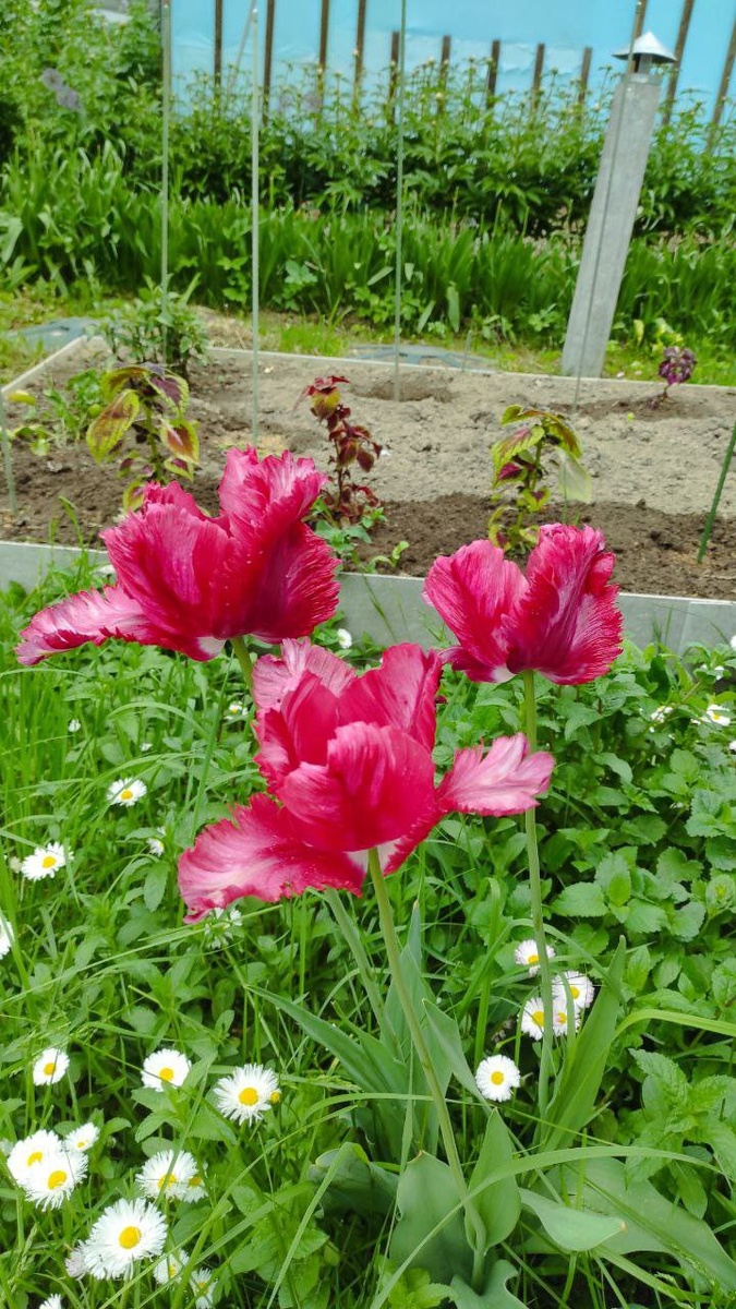 Здравствуйте, мои хорошие 🤗 Последний день весны, последние тюльпаны и нарциссы. Наступившая жара ускорила процесс цветения и увядания. Грустно, но факт. Я не оставляю завядшие бутоны, убираю на всех цветах. Чтобы растение не тратило силы на образование семян, а сразу накапливало питательные вещества на следующий год, готовилось к цветению. Эстафету цветения готовы принять пионы. Хорошо они перенесли пересадку осенью 2023 и весной 2024 .Разрослись сейчас так, что и роз почти не видно ☺️ Ну надеюсь королевы сада пойдут активно в рост и покажут себя во всех красе 🌹 принимая эстафету в цветении. Вот такие дела. До скорых встреч 🤗