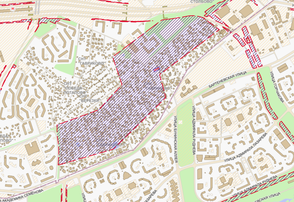 После анализа документов и информационной системы обеспечения градостроительной деятельности г. Москвы мы выяснили, что на месте СНТ более 30 лет назад планировалось проложить магистральный газопровод. Информацию о газопроводе и его охранной зоне внесли во все градостроительные документы.