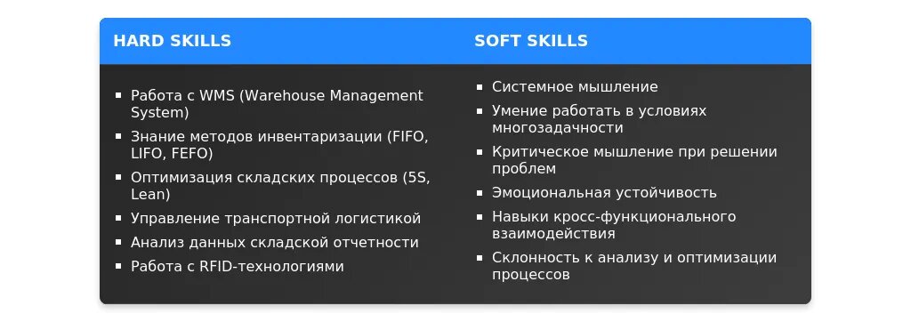 Пример 2: "Опыт работы с WMS-системами (1С, SAP, Oracle) — 7 лет."