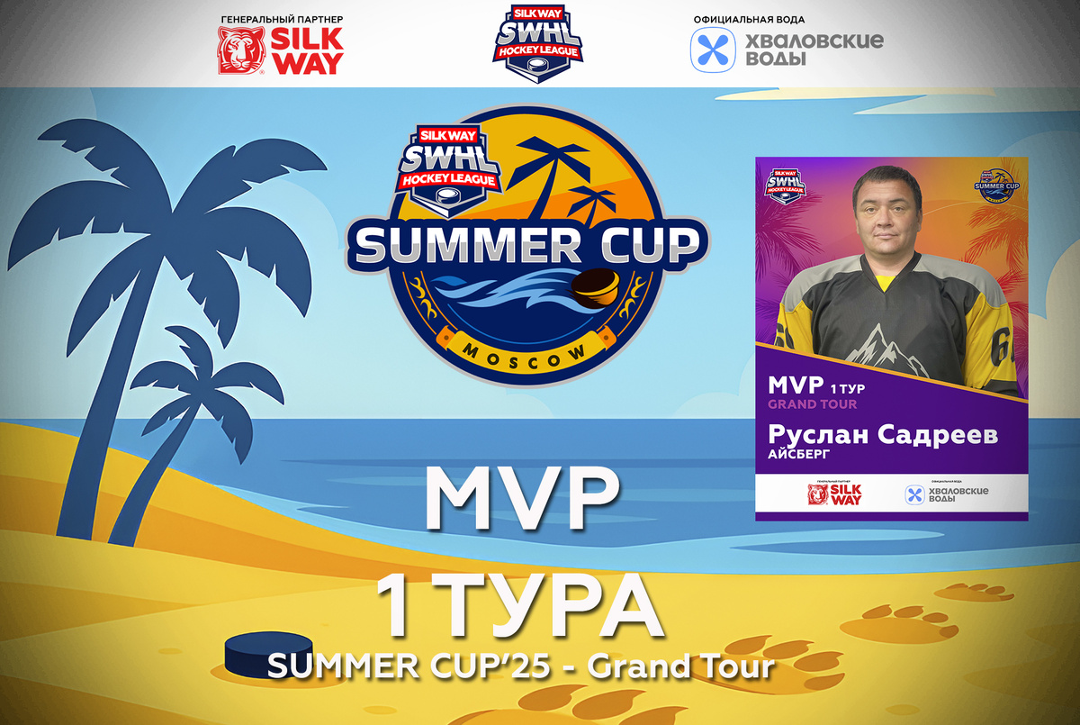 MVP 1 Тура SUMMER CUP – Grand Tour: Руслан Садреев — первый герой лета! Silk Way Hockey League с гордостью объявляет: MVP первого тура SUMMER CUP’25 признан Руслан Садреев, нападающий команды АЙСБЕРГ! Старт нового сезона SUMMER CUP – Grand Tour получился ярким, эмоциональным и историческим. Для команд АЙСБЕРГ и Ice Hackers эта игра стала дебютом на ледовой арене в официальном статусе. И уже с первых минут стало ясно: скучным этот матч не будет. Матч-открытие оказался драматичным, полным неожиданностей и настоящих хоккейных качелей. Первый период начался с доминирования Ice Hackers. К середине периода они повели в счёте 2:0, благодаря дублю Алексея Захилько. Но ближе к концу периода Руслан Садреев сделал важнейший шаг — открыл счёт для своей команды и сократил отставание. Этот гол стал поворотной точкой, символом пробуждения и включения команды в борьбу. На перерыв команды ушли со счётом 2:1 в пользу Хакеров, но было очевидно — матч только начинается. Второй период подарил болельщикам и