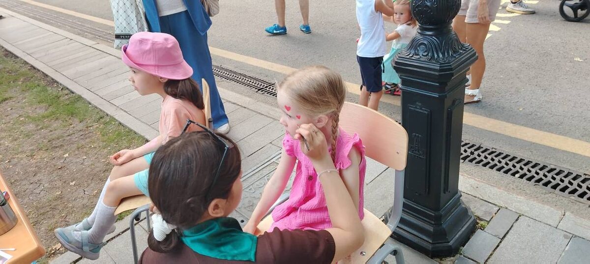 На ярмарке работают выставки игрушек и товаров для детей, предусмотрена зона аквагрима, фотозона, квесты и игровые площадки. Можно также принять участие в тематических квизах и сделать фотографии с артистами уличного театра, которые гуляют на ходулях среди гостей.