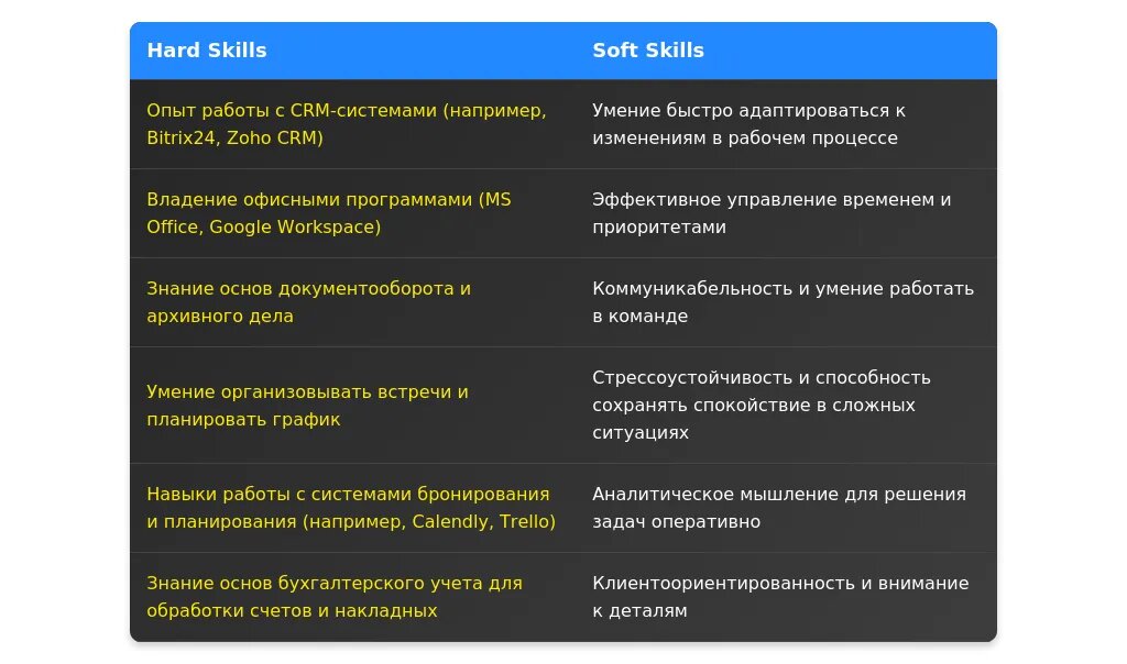 После адаптации: "Организация мероприятий, работа с CRM, стрессоустойчивость."