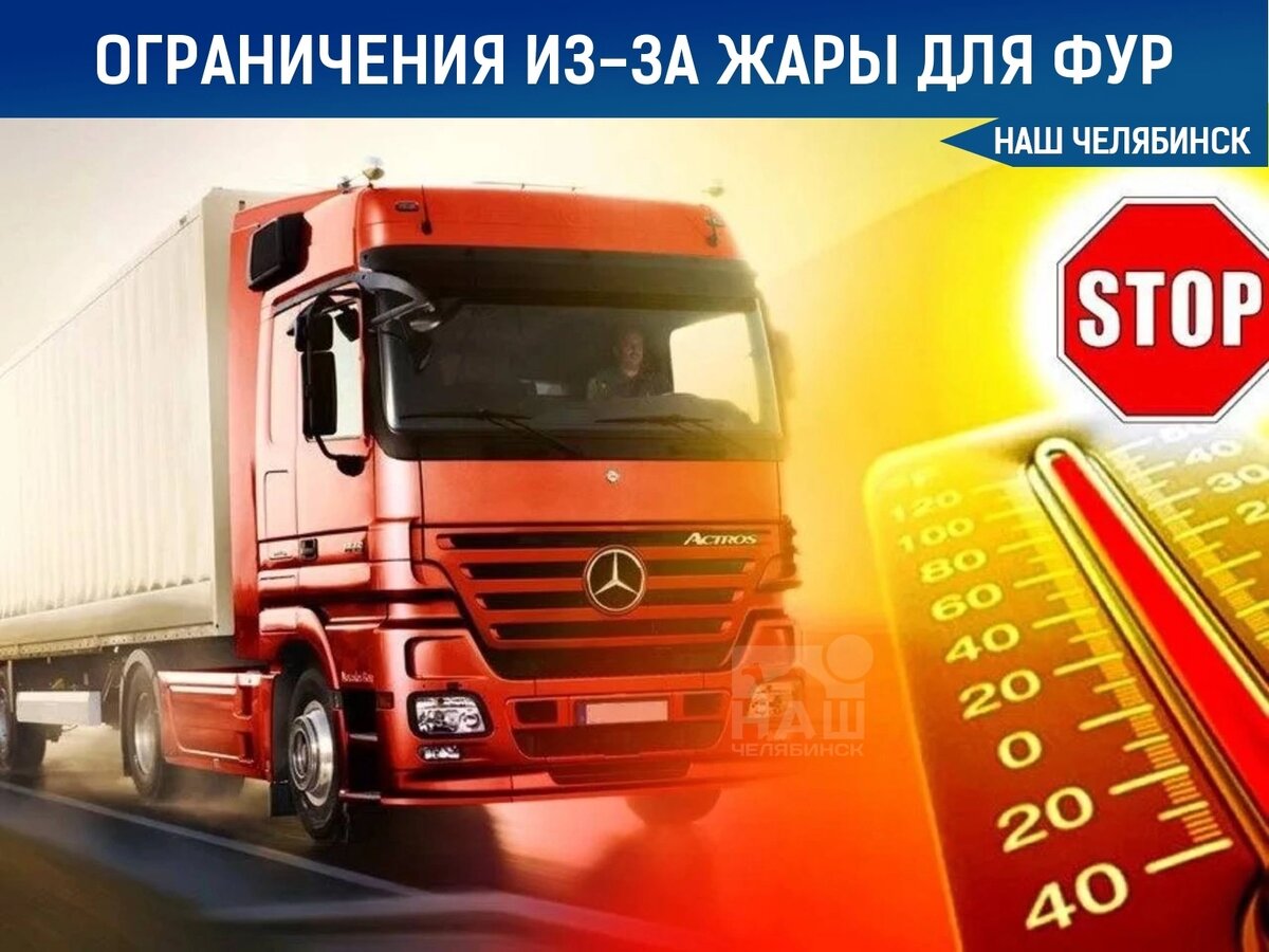 Из-за сильной жары на трассах в Челябинской области ввели ограничения С 12:00 до 20:00 31 мая и 1 июня для большегрузов закрыты участки федеральных дорог: ▪️М-5 «Урал» с 1548 по 1871 километр; ▪️М-5 «Урал», подъезд к Екатеринбургу с 11 по 130 километр; ▪️А-310 Челябинск — Троицк — граница с Республикой Казахстан с 16 по 146 километр; ▪️Р-254 «Иртыш» Челябинск — Курган — Омск — Новосибирск с 12 по 465 километр; ▪️Р-254 «Иртыш» Челябинск — Курган — Омск — Новосибирск, подъезд к Тюмени с 0 по 91 километр.