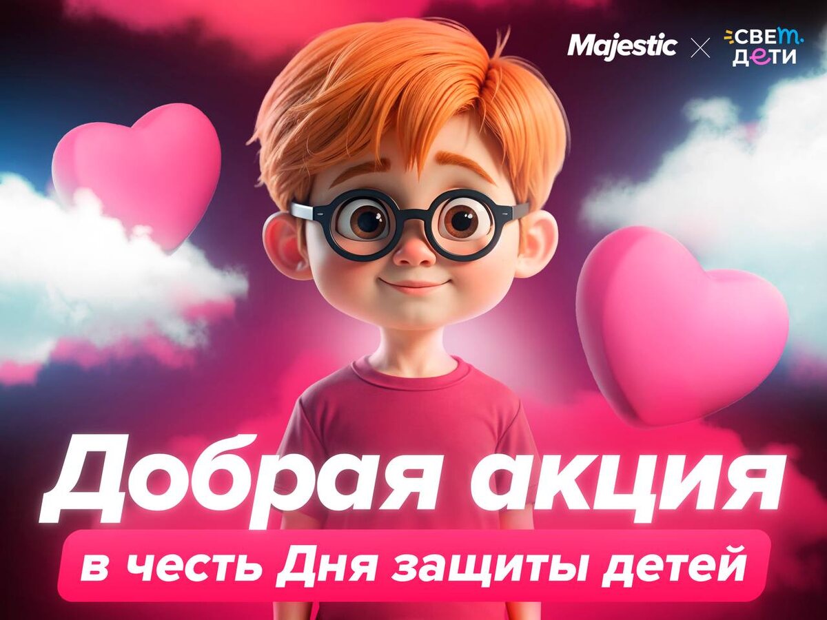 😇 Благотворительный сбор ко Дню защиты детей (с 31 мая по 1 июня 23:59) ❤️❤️❤️❤️❤️❤️❤️❤️❤️ Уже четвёртый год подряд мы проводим эту акцию, чтобы каждый желающий смог подарить праздник детям. Принять участие — svetdeti.org/majestic/dobro2025. Наша поддержка ежегодно помогает обеспечить самое необходимое: • экстренную медицинскую помощь; • проведение дорогостоящих обследований и лечений; • оплату реабилитационных программ; • организацию поездок к месту лечения и обратно. Все участники получат Х2 Majestic Coins от суммы своего пожертвования и шанс выиграть набор «Королевского старта» Летнего пропуска 2025 (подробности — на сайте). ❤️ Узнать больше о фонде и акции, а также ознакомиться с отчетами