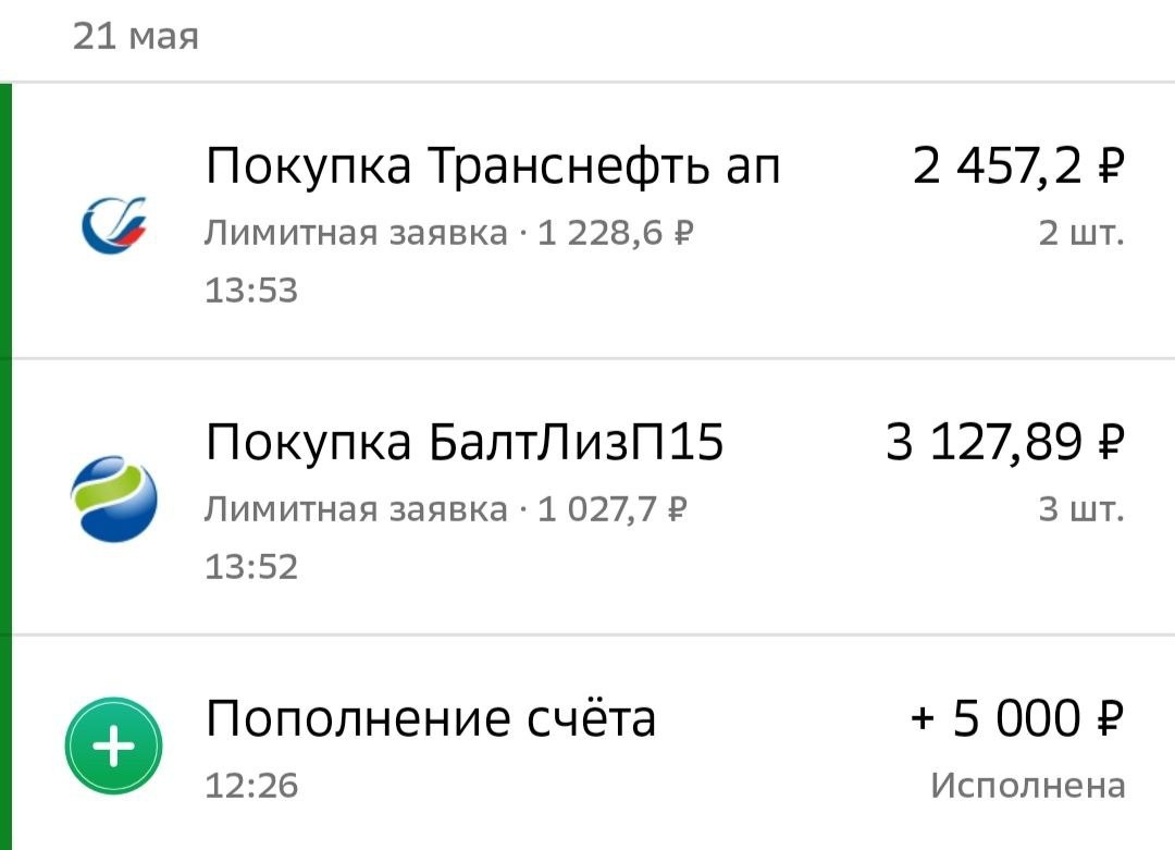 Рынок продолжает болтаться в боковике и делает хаотичные движения на фоне геополитических новостей. Индекс МосБиржи на 21.05 был в районе 2815📈 🗣В июне можем увидеть продолжение роста индекса, если Центральный банк решит снизить ключевую ставку и не будет никаких геополитических шоков, посмотрим. Пополнил свой портфель на ИИС в рамках ежемесячных пополнений, в этот раз на 5 000 ₽. Стараюсь пополнять в месяц от 10 000 до 20 000₽.Скоро будет еще одно пополнение. В этот раз купил акции и немного облигаций, в рамках плана, который недавно описывал здесь. Вернул доли акций и облигаций к норме, соотношение 70/30. ⛽️Транснефть – 2шт. Держу уже 16 акций данной компании. Жду от неё рекомендации по дивидендам (в прошлом году рекомендация была в конце июня, в этом году будет раньше). За 2024 год выплаты, по оценкам аналитиков, могут достичь 160–200 руб./на акцию в зависимости от корректировок. Мой прогноз ~ 180 руб./на акцию. ▪️БалтЛизП15 – 3шт. Параметры выпуска: • Цена: 103,23% (на