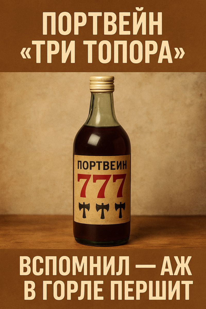 Знаешь, сейчас модно вспоминать всякое дорогое, вроде сервелата или финских сапог. А я вот сегодня вспомнил портвейн. Тот самый. «777». Три семёрки. Три топора, как мы его звали. Вот вроде бы чепуха, а ведь это — целая глава жизни. Не только моей — нашей, общей. Кто жил в Союзе, тот поймёт. Пили не за вкус. Пили, потому что душе тяжело, потому что зарплаты на всё не хватало, потому что с девушкой поругался, потому что день такой. А он — рядом. Винный магазин у остановки. Продавщица в белом халате. Очередь, мужики переглядываются. Берёшь бутылку за рубль с копейками — и идёшь куда-нибудь, где тихо. Или, наоборот, где шумно и друзья. Вкус… Ну, скажем прямо — мимо «каберне» проходил. Сладкий, тёплый, густой. Иногда с кислинкой. Иногда — как будто асфальт растопили. Но важно было не это. А то, что он работал. Дёшево, быстро и честно. Иногда на всех была одна бутылка. Гранёный стакан — по кругу. Без брезгливости, без жалоб. И ведь не спивались, как сейчас говорят. Мы жили. Смеялись. Пла