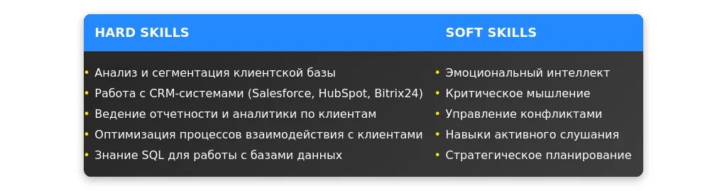 Хороший пример: "Навыки управления клиентской базой, включая сегментацию и повышение лояльности".